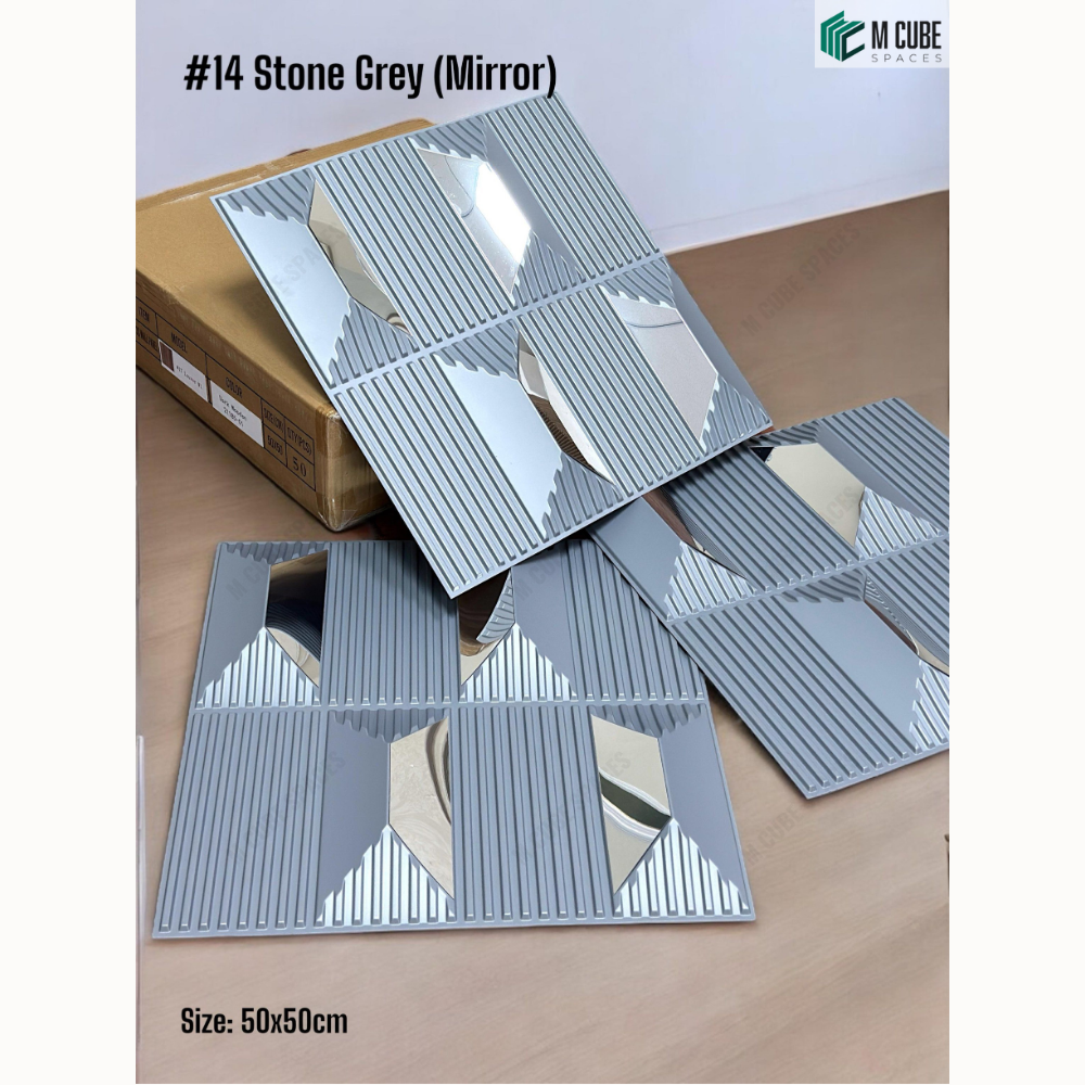 Grey Mirror 14 Stone (50cm x 50cm) 3D PVC Wall Panel