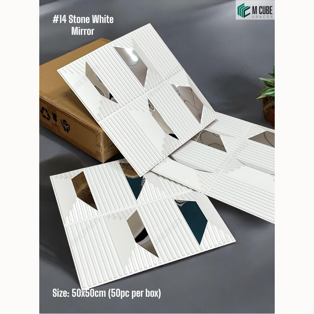 White Mirror 14 Stone (50cm x 50cm) 3D PVC Wall Panel