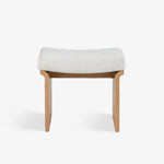 Architectural softness defines the Saanra Pouf. The rounded cushion sits atop warm, tapered wooden legs, bringing contrast, comfort, and elevated detail to any room.