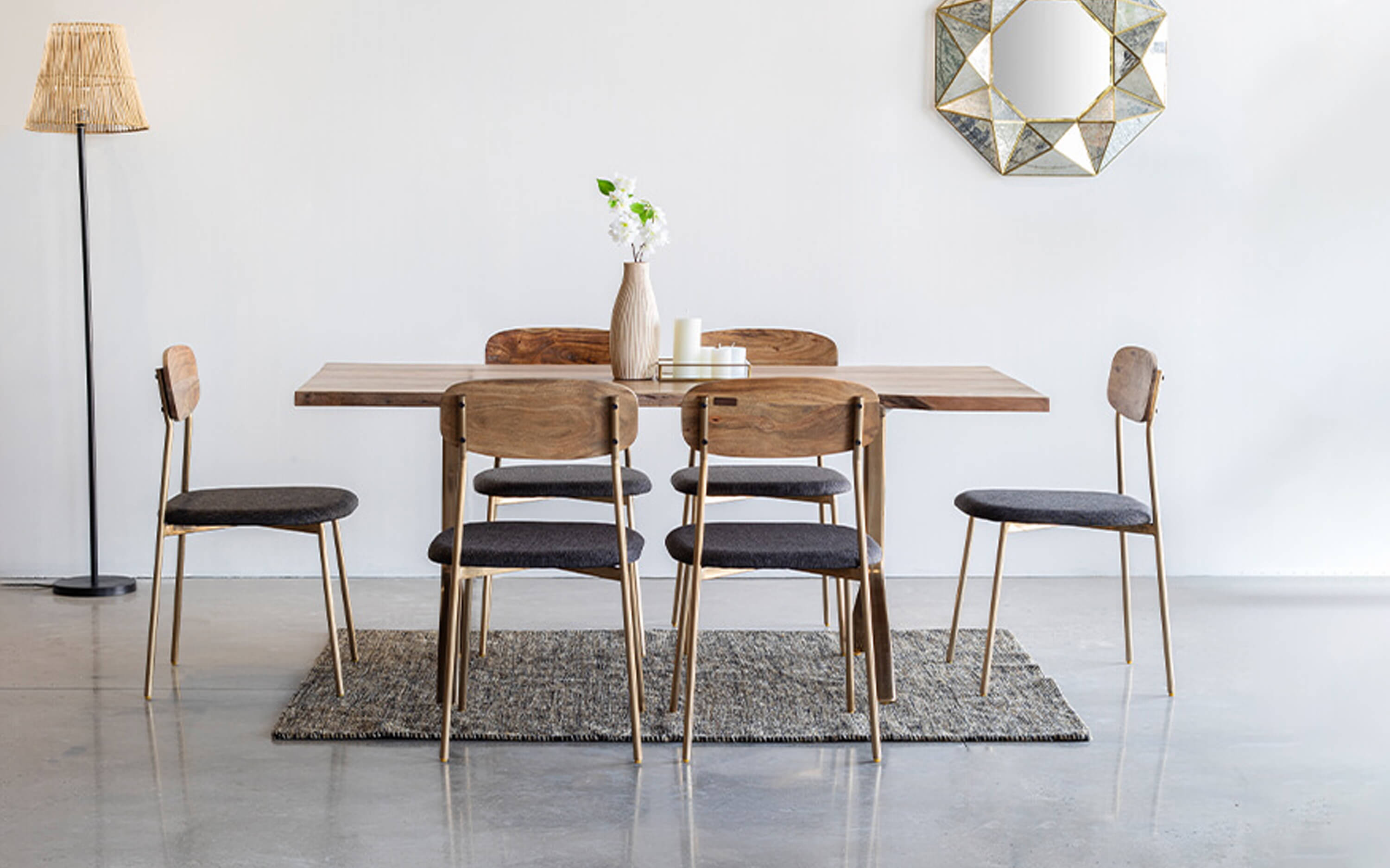 - Finish: Natural Finish on Wood and Gold Finish on Mild Steel