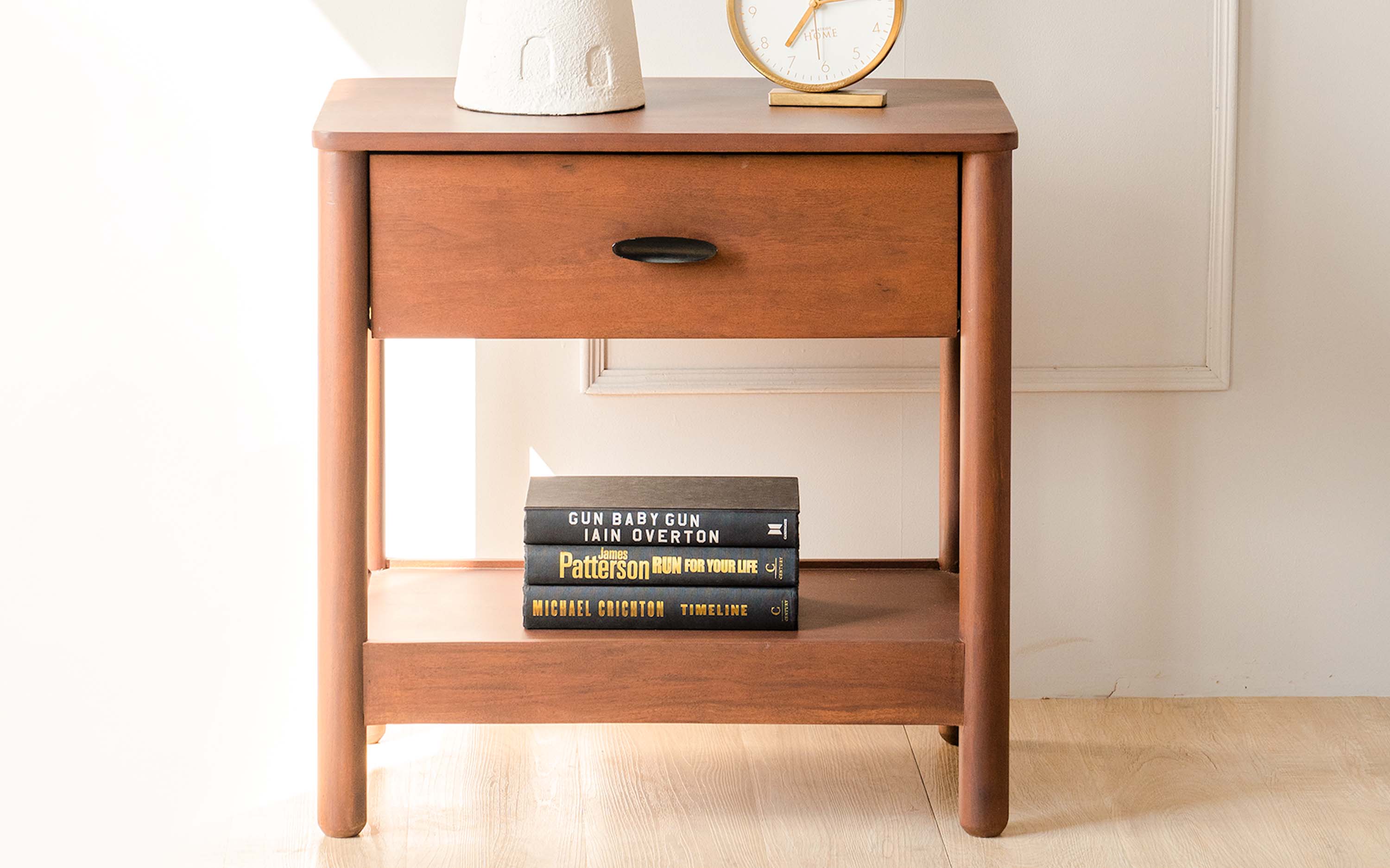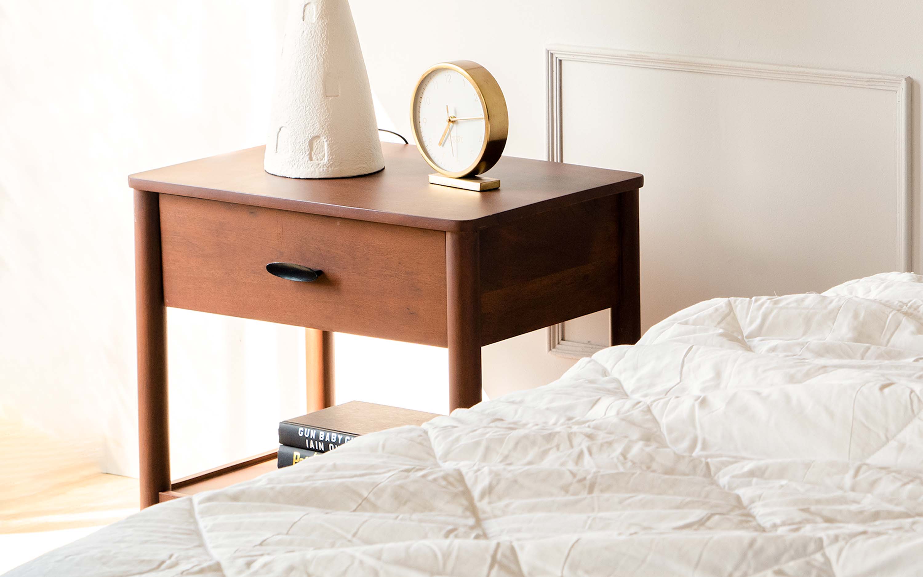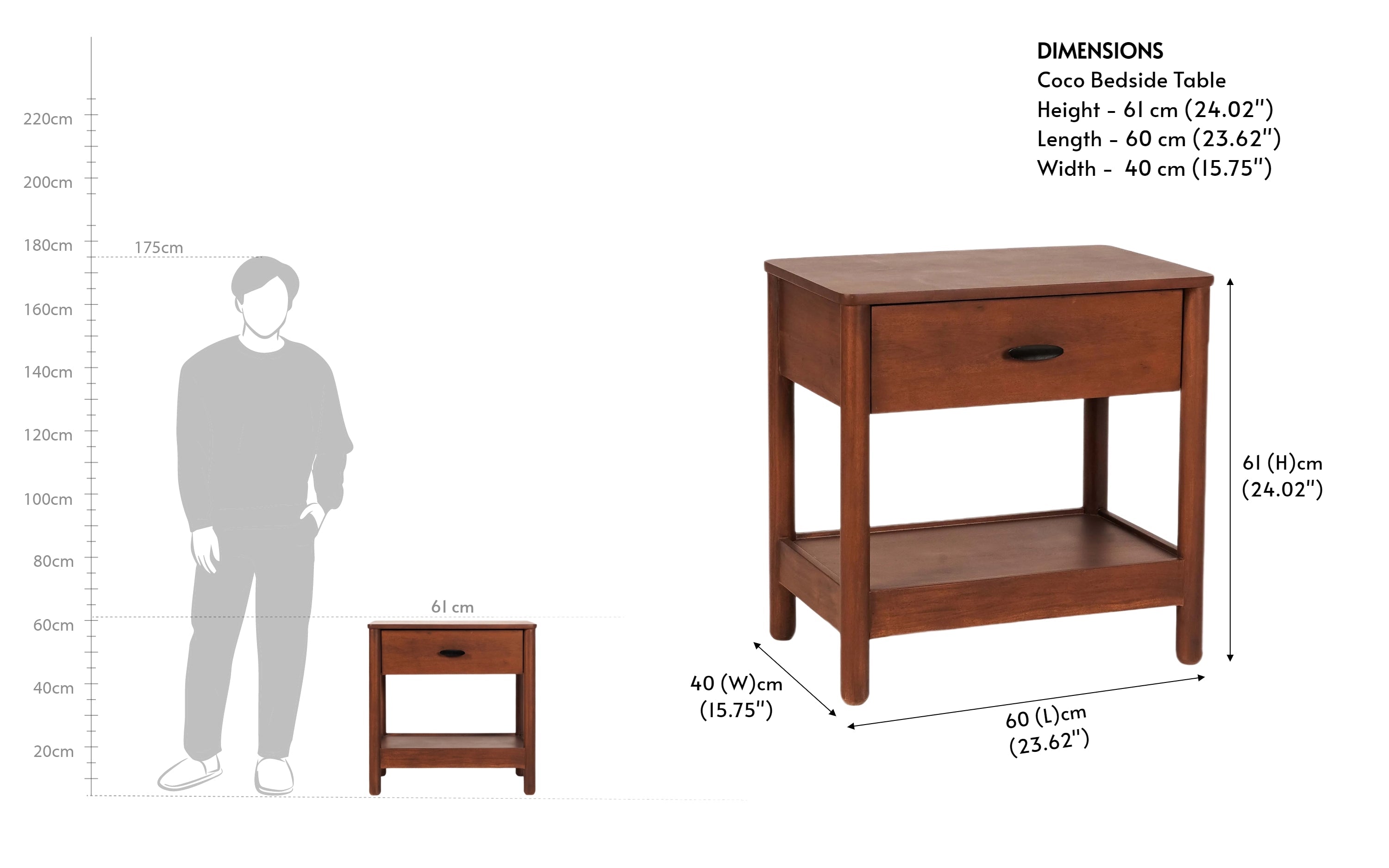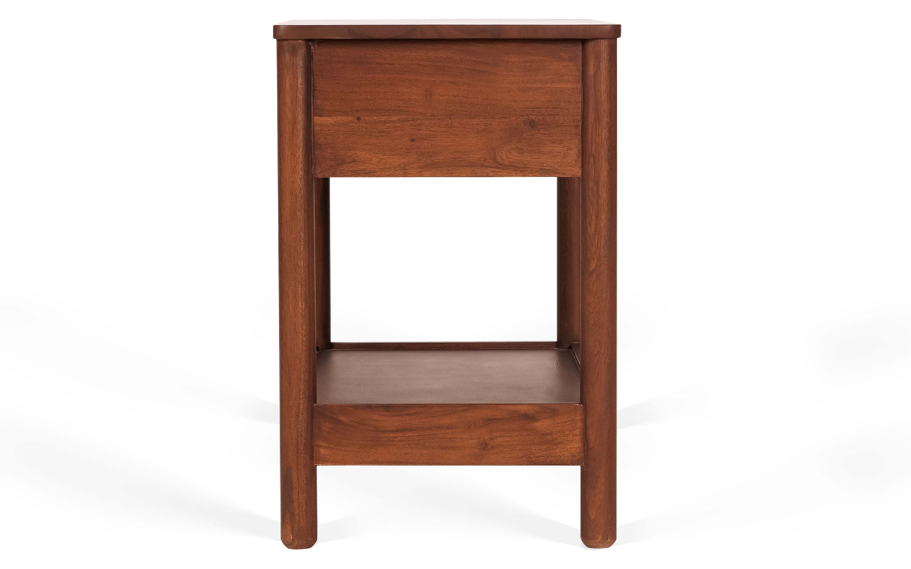 Beautifully simple and streamlined, this Coco solid acacia wood nightstand lets its materials and craftsmanship shine. The drawer holds all of your nighttime essentials, while the top of the bedside table provides just enough space for your reading light, book, phone and glasses.