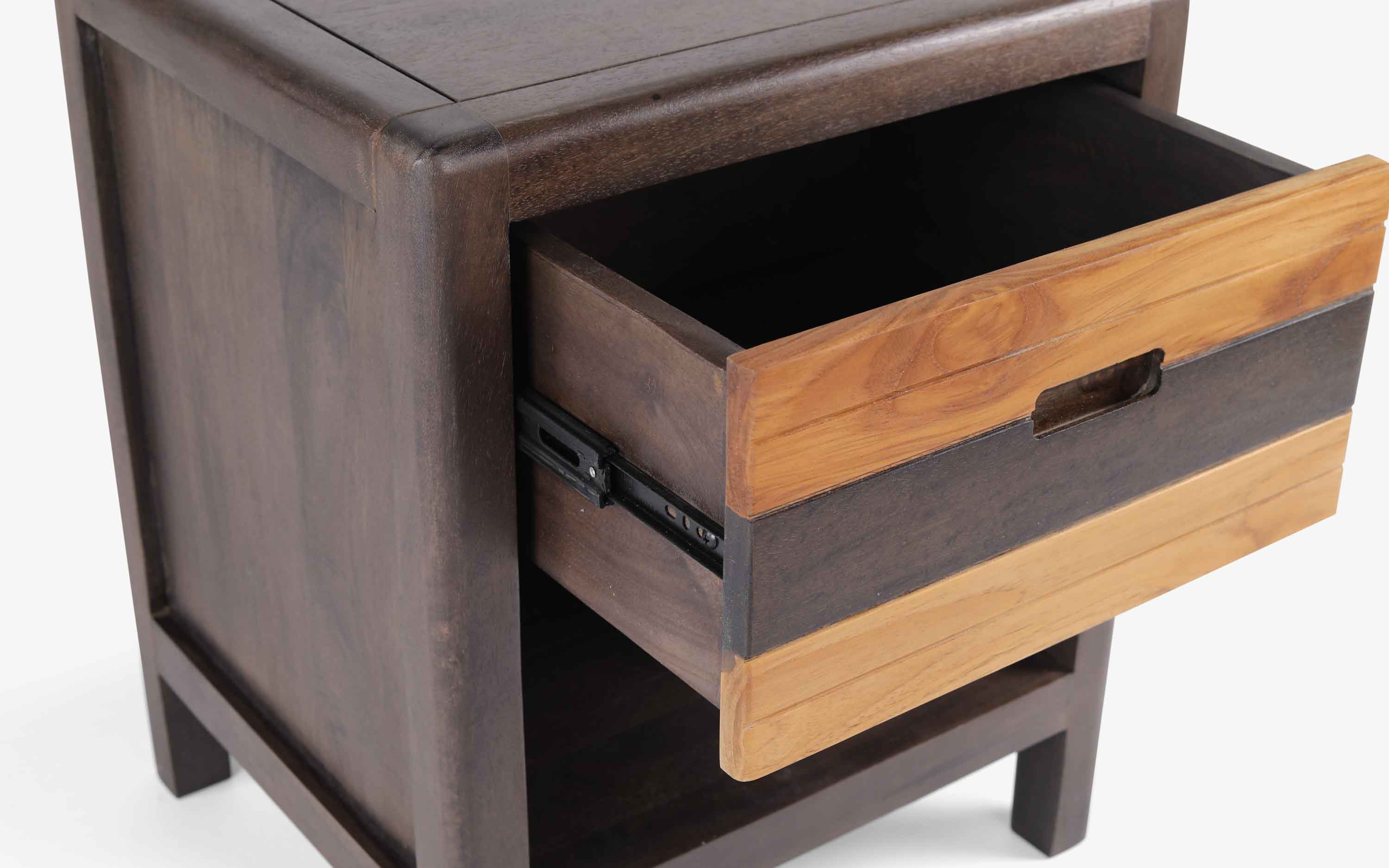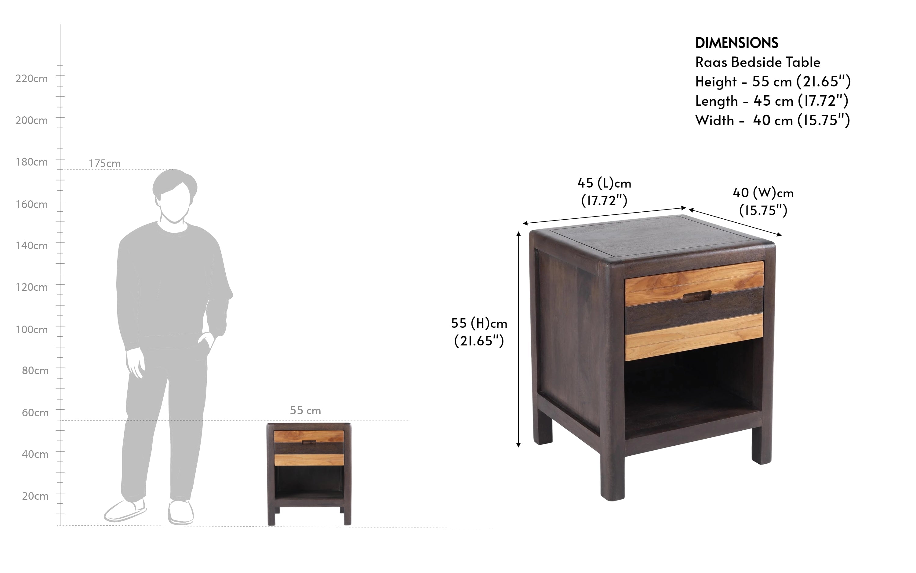 Handcrafted in durable, solid teak wood and mango wood combination our Raas collection brings out the perfect contrast while bringing out the natural grains of the wood. This gets a classic styling to any bedroom space.