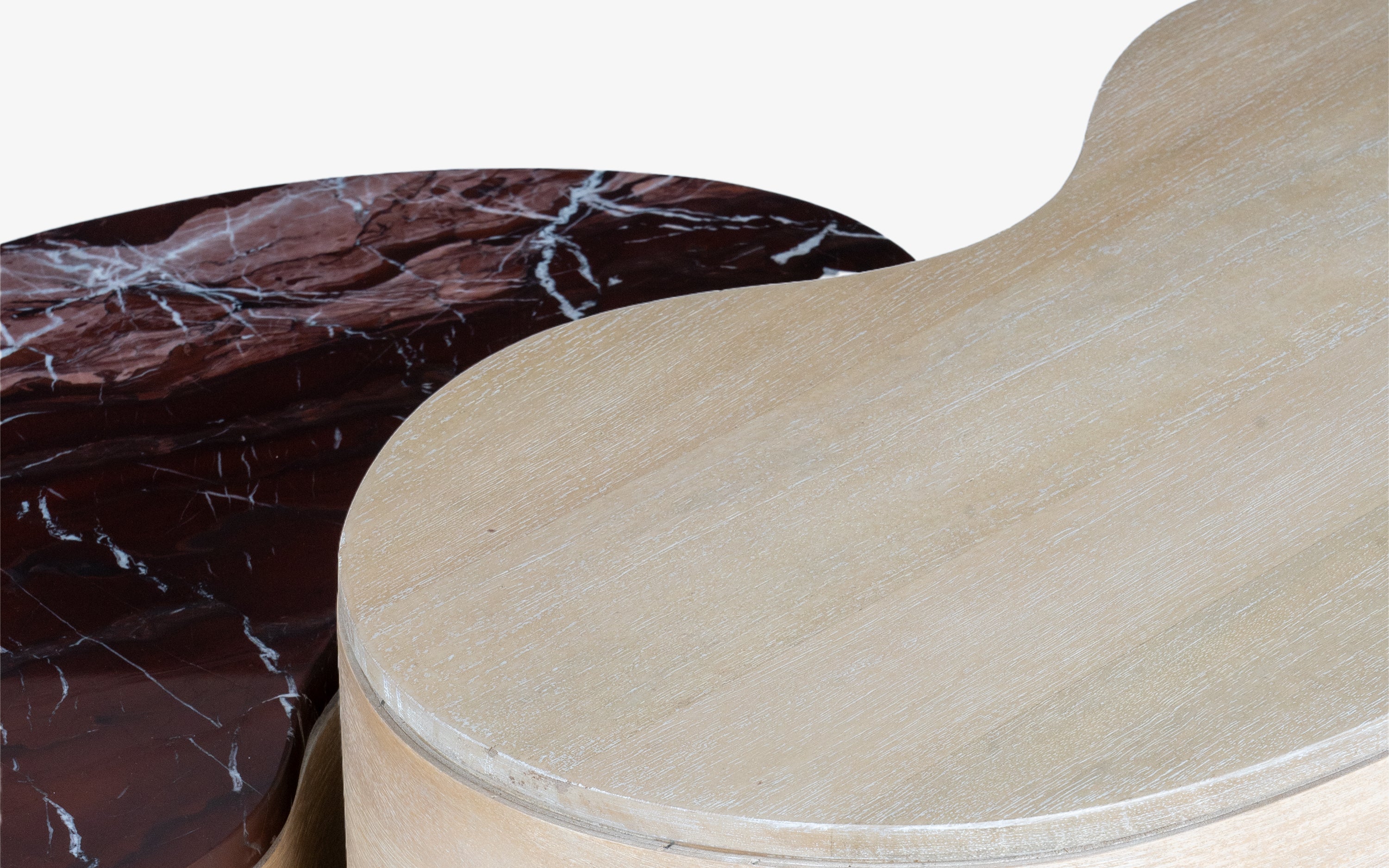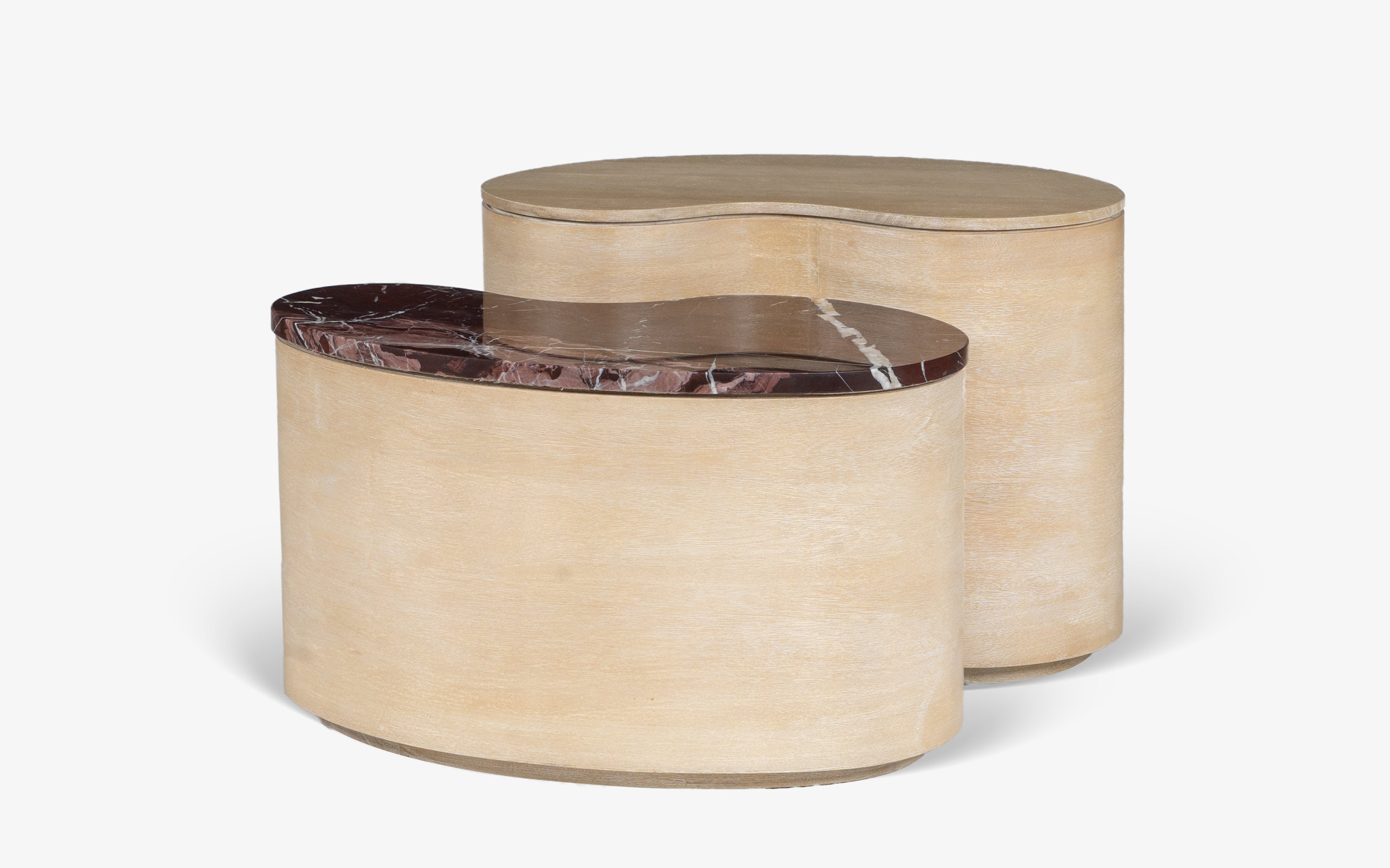 The Chip and Dale Coffee Table Set brings a playful touch to modern interiors, inspired by the beloved chipmunks. The material blend, organic curves and varying heights blend functionality with artistic expression.