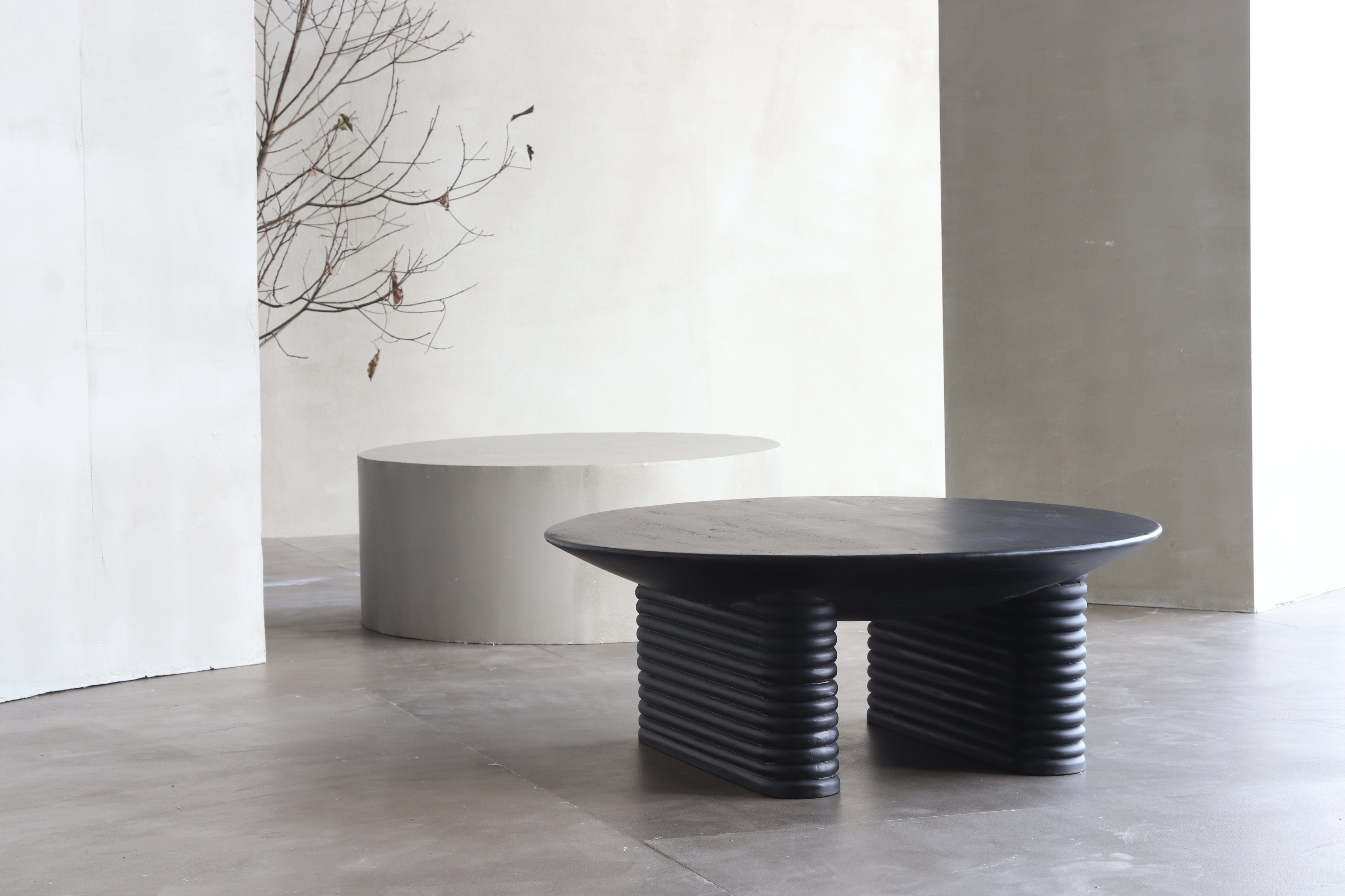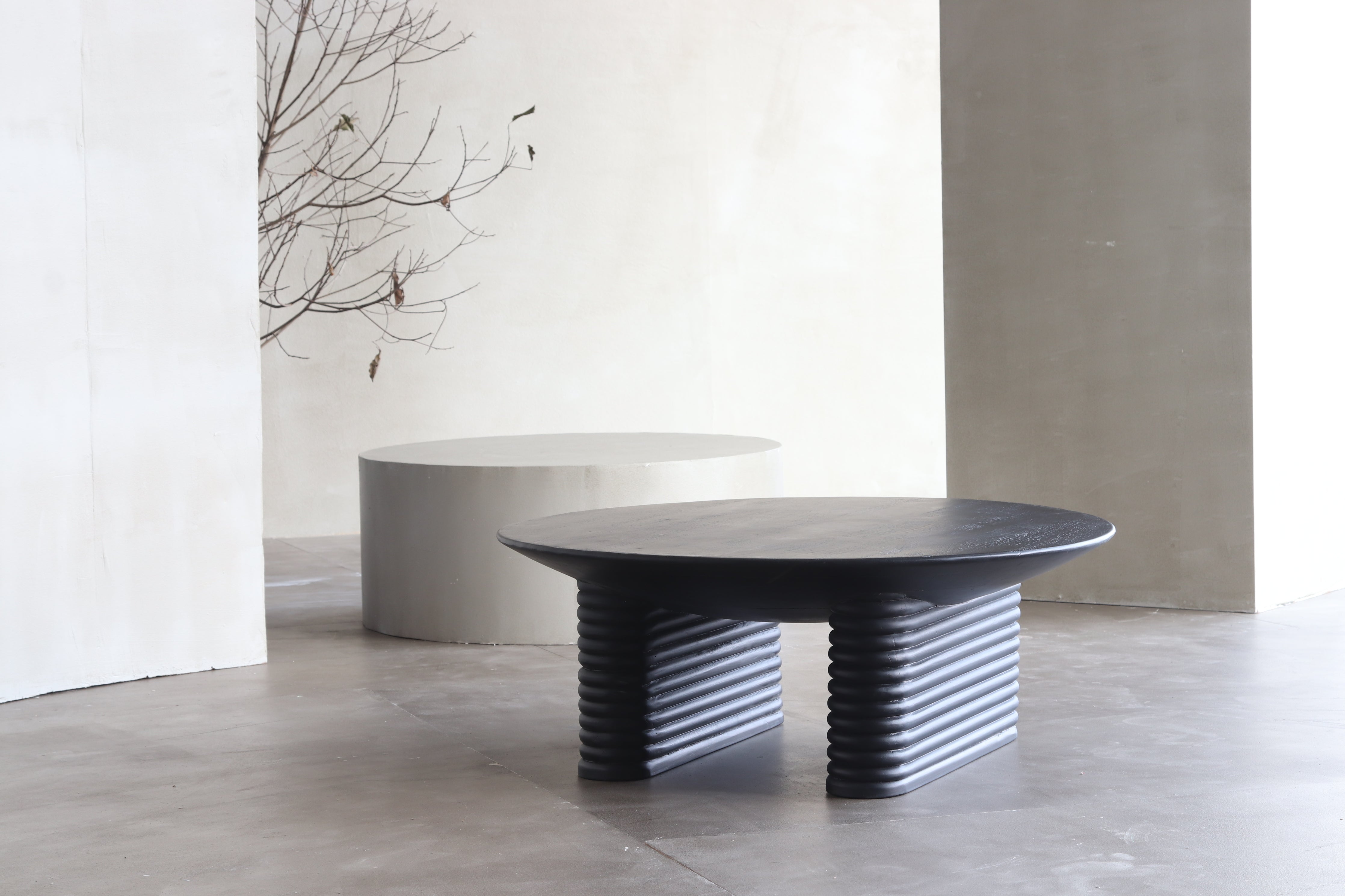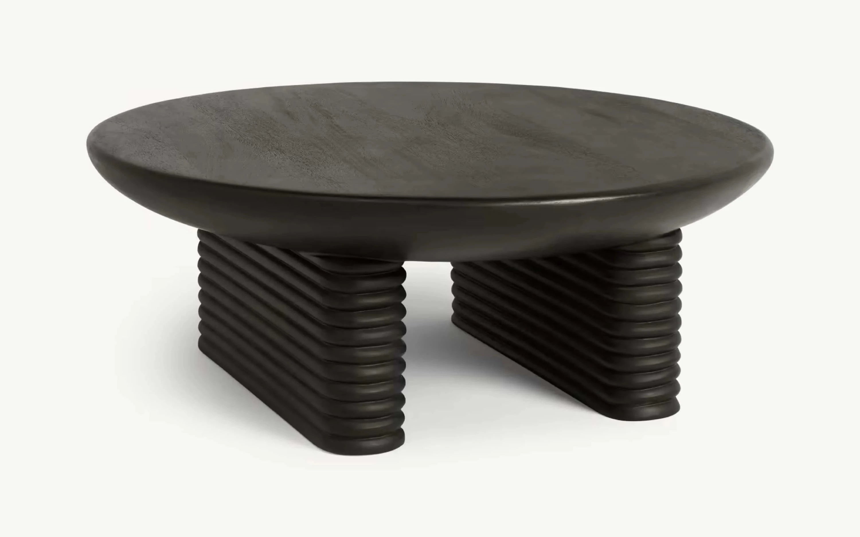 Featuring curved corners and ribbed detail, our Ribbed collection, inspired by Greek and Roman architecture, has a distinct design language and monolithic personality. This collection has a typical mid-century vibe, which is an ongoing interior trend. Made in mango wood with a dark finish, the ribbed convex detail in a less than perfect circle also adds an illusion of extra height to the product.