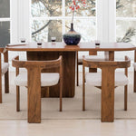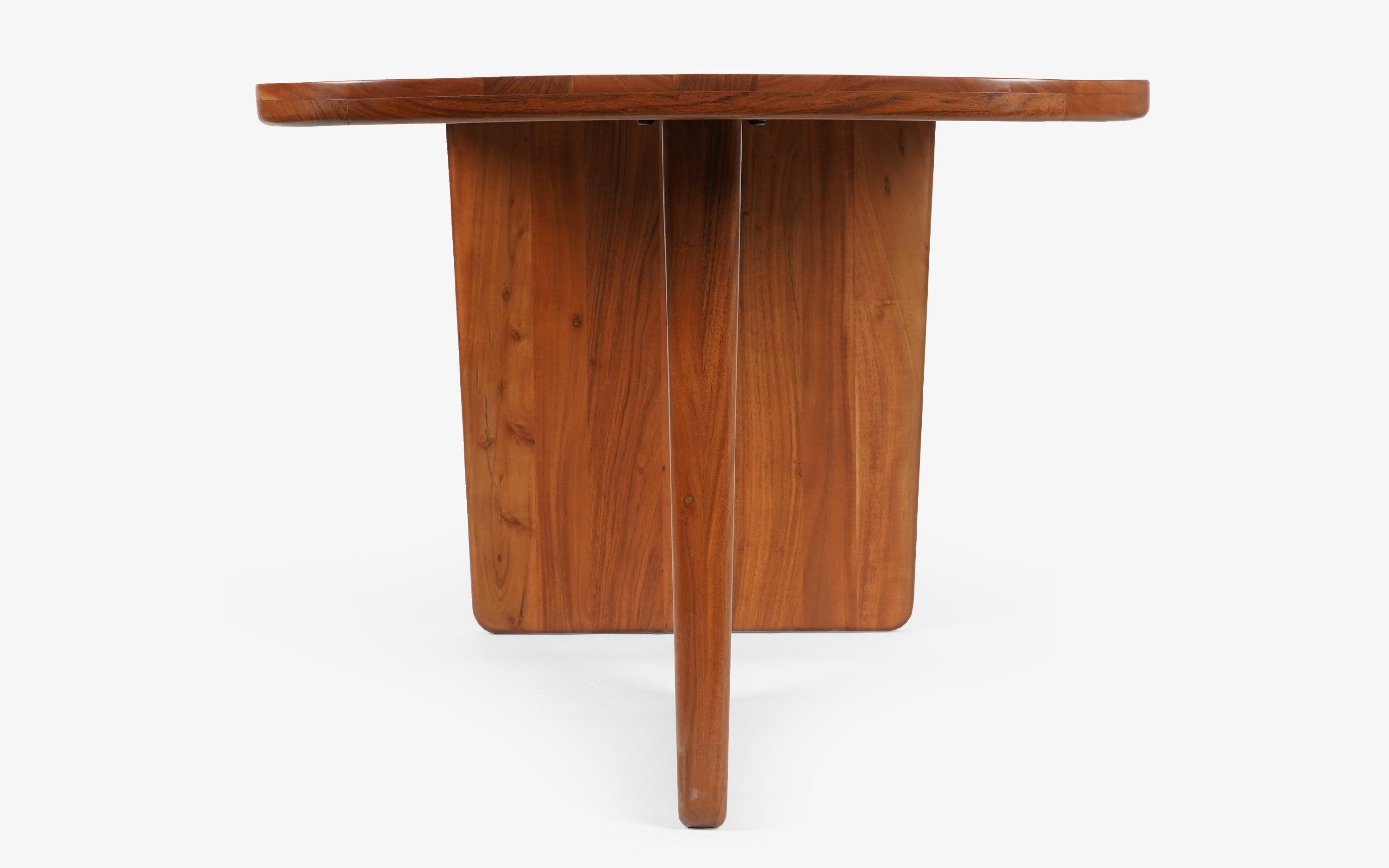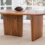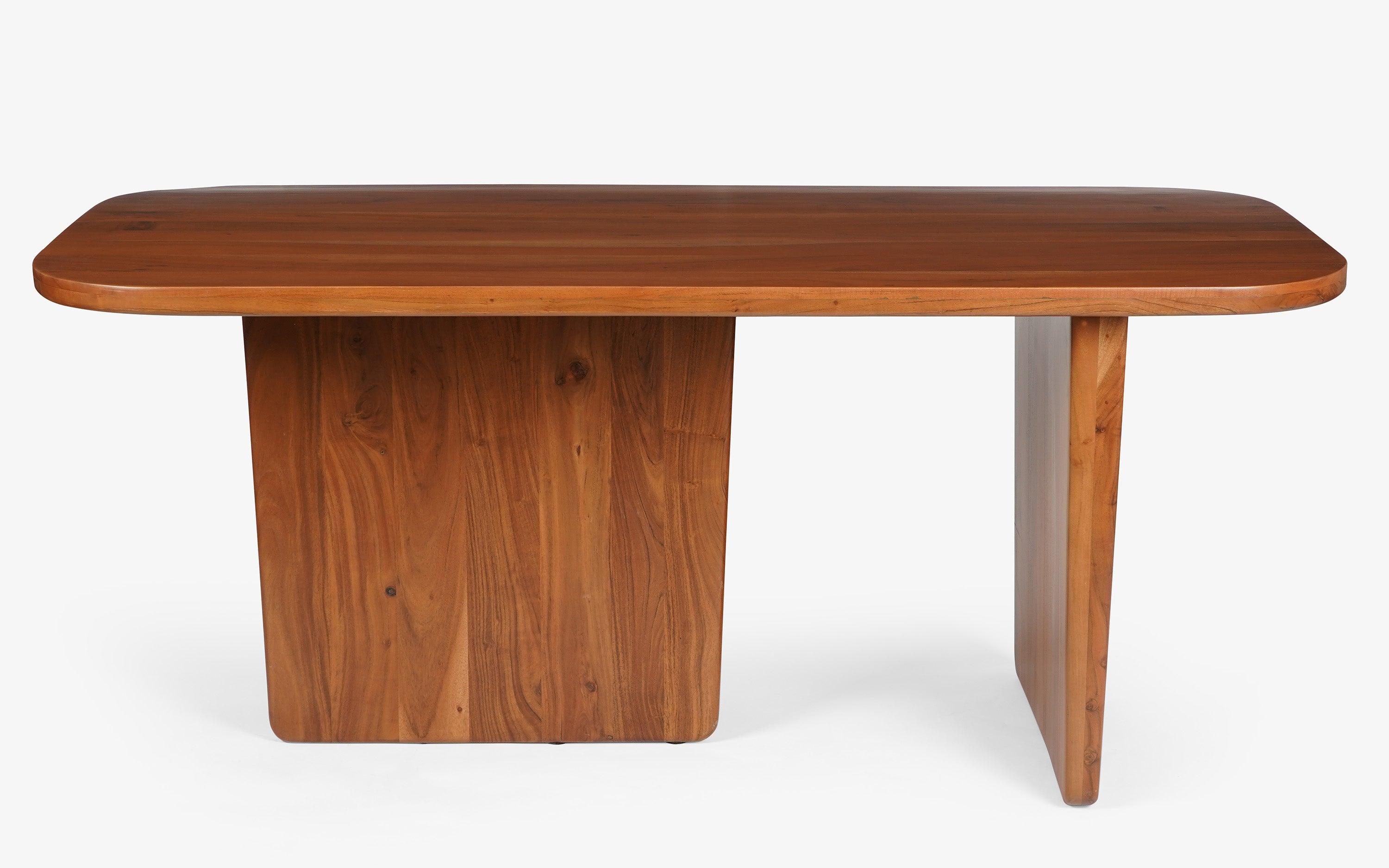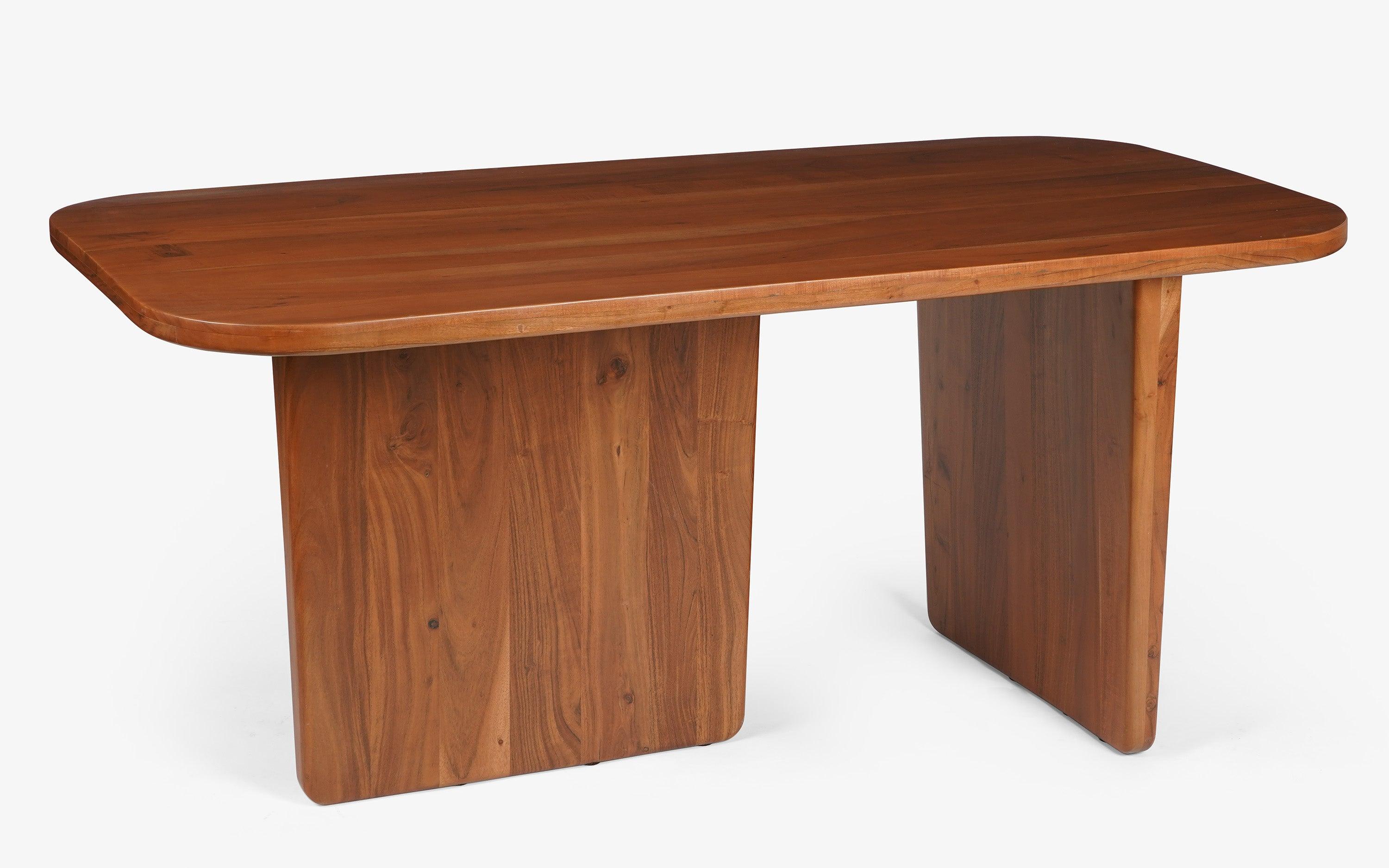 Quality craftsmanship and an eye-catching curved silhouette lend this dining table plenty of modern appeal. The dramatic lines of this dinner table's solid Acacia construction offer your dining room a grounding focal point with a sculptural edge.