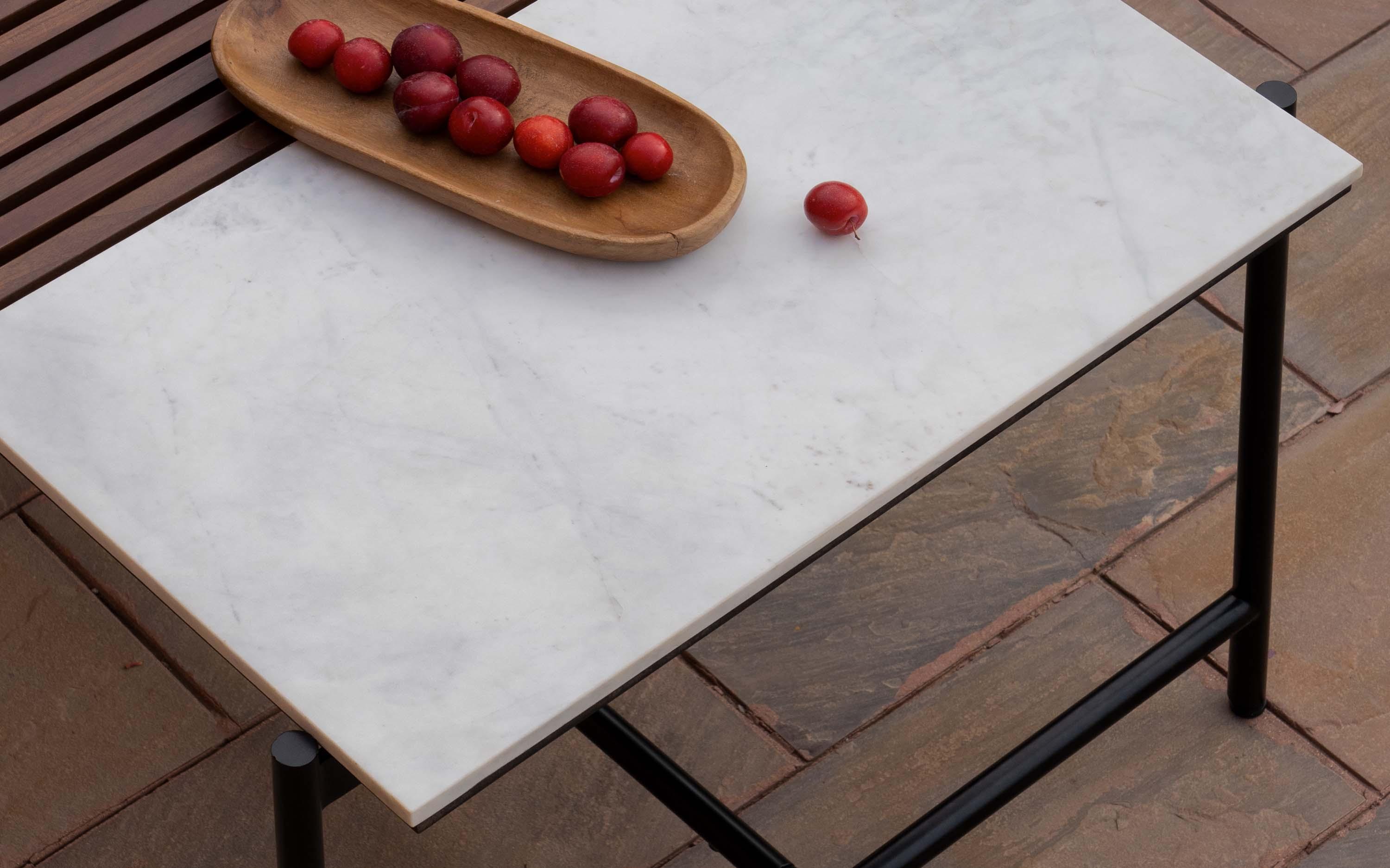 - Material: Teak Wood, White Marble and Mild Steel