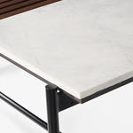 - Finish: Teak Brown Mahogony Finish on wood, White Marble and Black Powder Coating on metal.