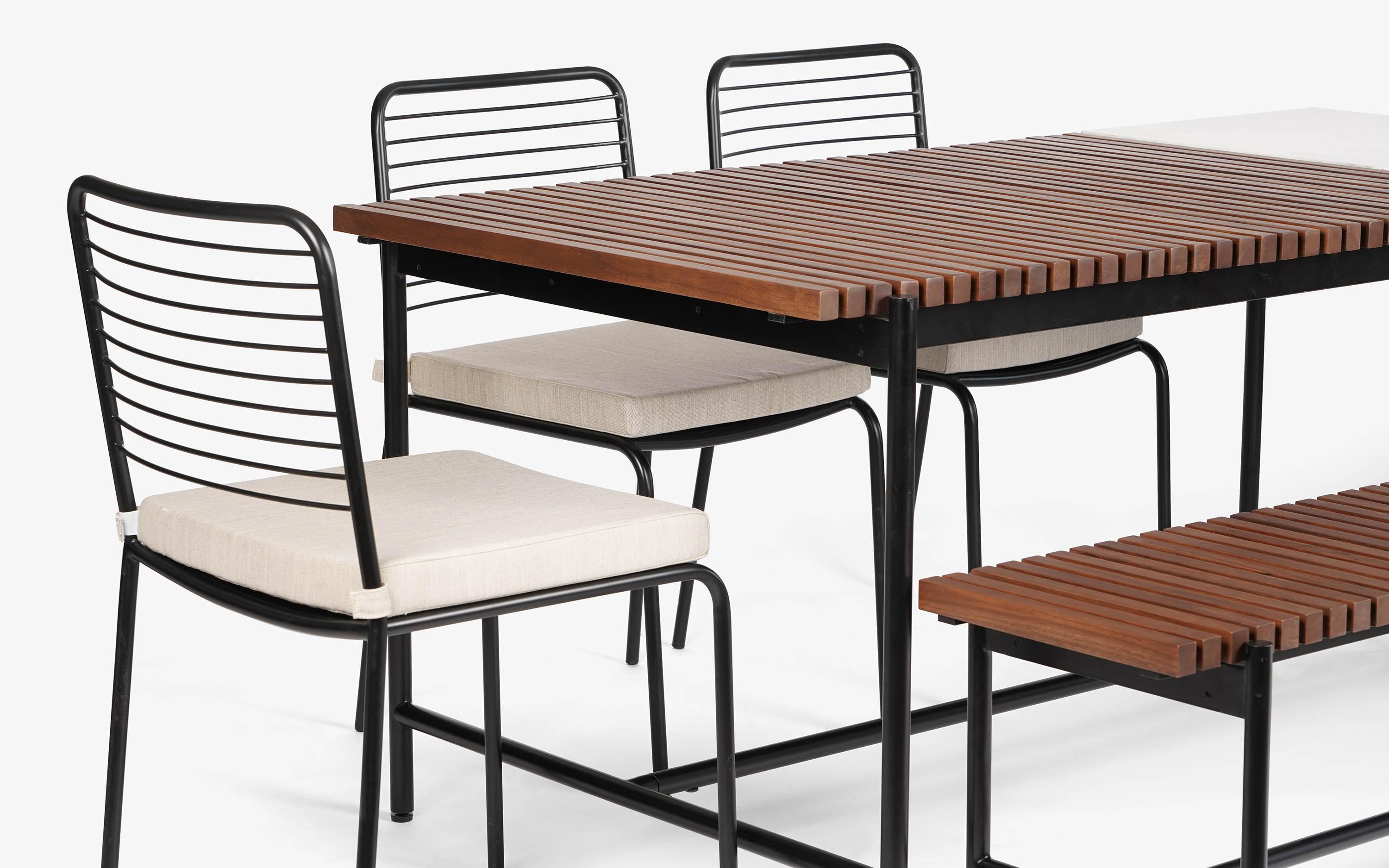 Elevate your outdoor experience with the Covent Garden Outdoor Dining Set—a stylish and durable ensemble that seamlessly merges functionality and elegance. The Covent Garden Outdoor Marble Top Dining Table, with its robust steel frame and Teak wood-marble tabletop, is a design masterpiece that effortlessly complements both outdoor and indoor settings, while also resisting the effects of sun and water. Complementing the table are the Covent Garden Stackable Chairs, thoughtfully crafted for comfort and style, perfect for outdoor seating while withstanding the elements, and designed to be stackable for your convenience.