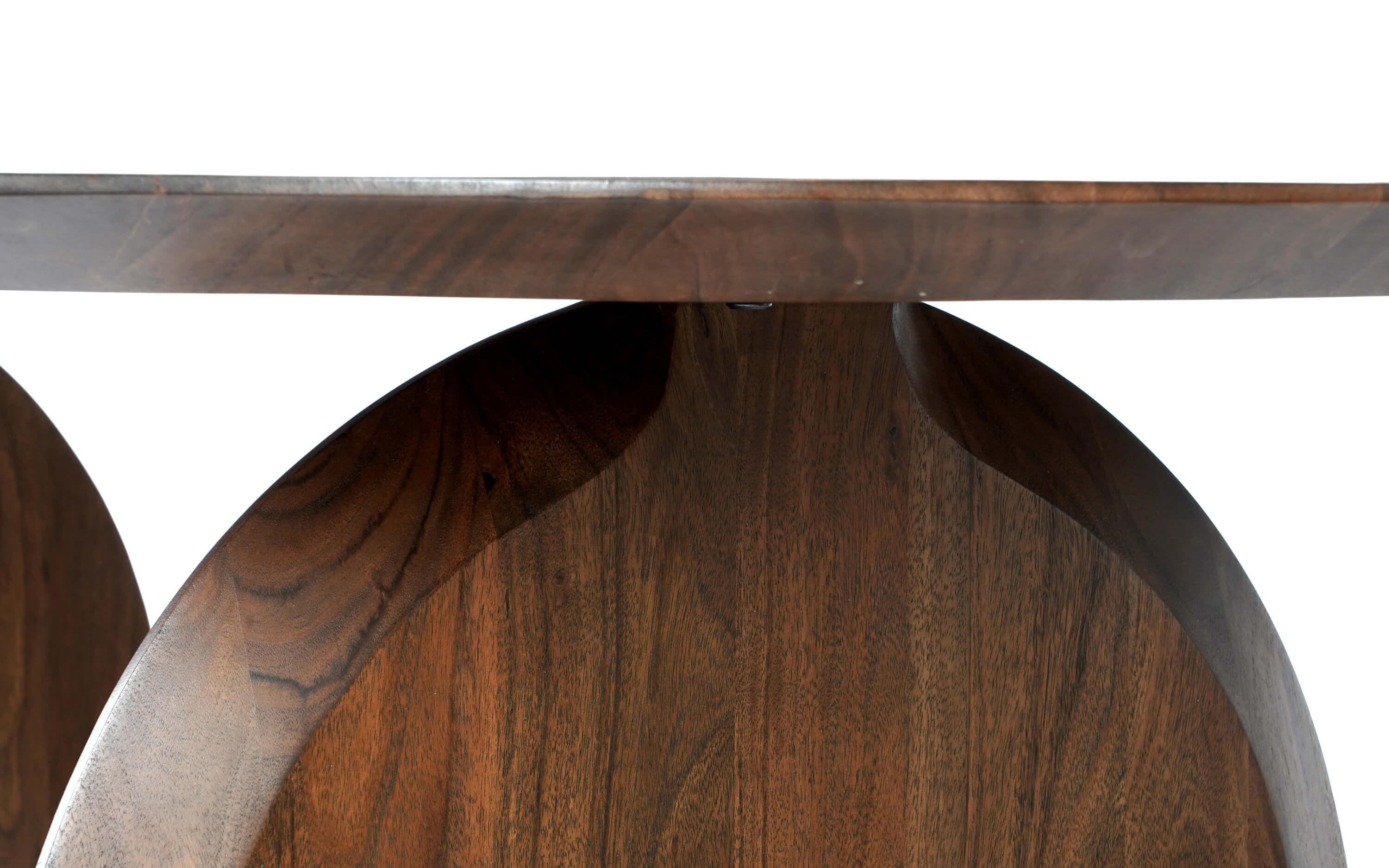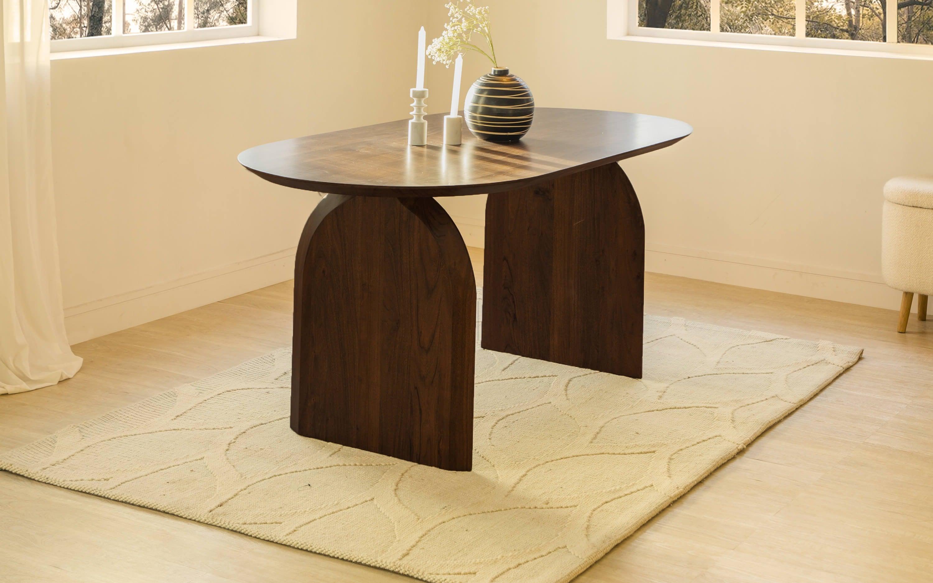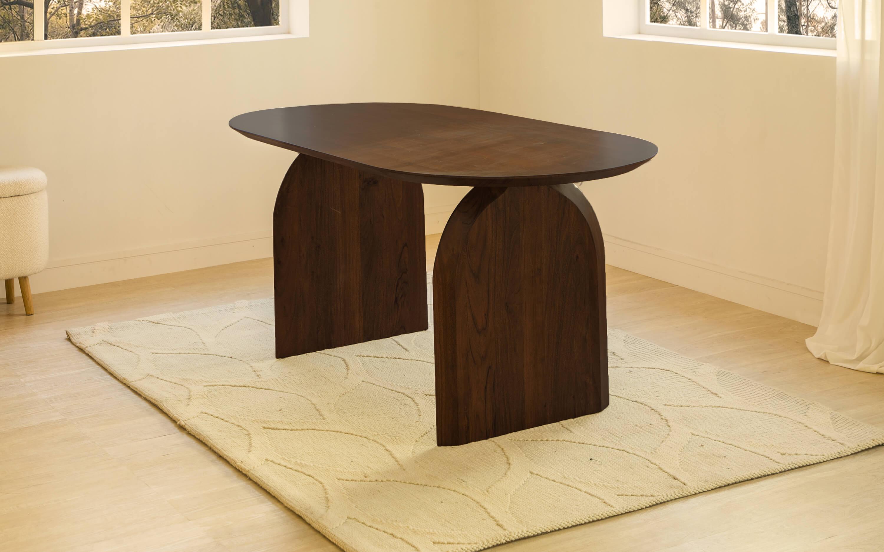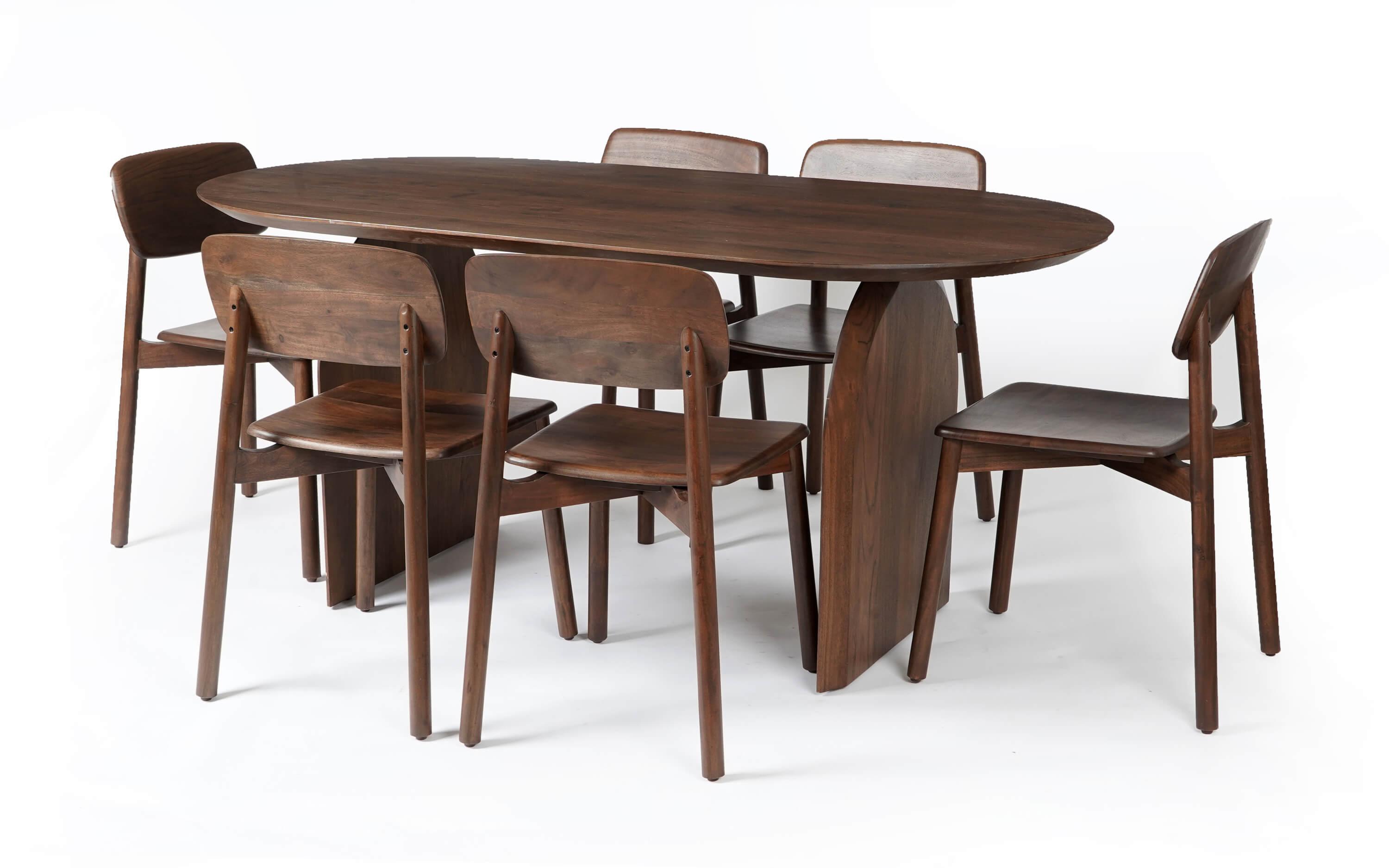 Simplistic in design but high in style, this Emiko dining table features a smooth, oval-shaped tabletop above sleek, solid wooden legs. It is finished in a rich American walnut finish and constructed of acacia wood. The table is sturdy and durable; it will be a perfect addition to your casual contemporary home and will prove to be a hit in any dining setting.