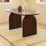 Simplistic in design but high in style, this Emiko dining table features a smooth oval-shaped tabletop above sleek, solid wooden legs. It is finished in a rich American walnut finish and constructed of acacia wood. The table is sturdy and durable; it will be a perfect addition to your casual contemporary home and will prove to be a hit in any dining setting.