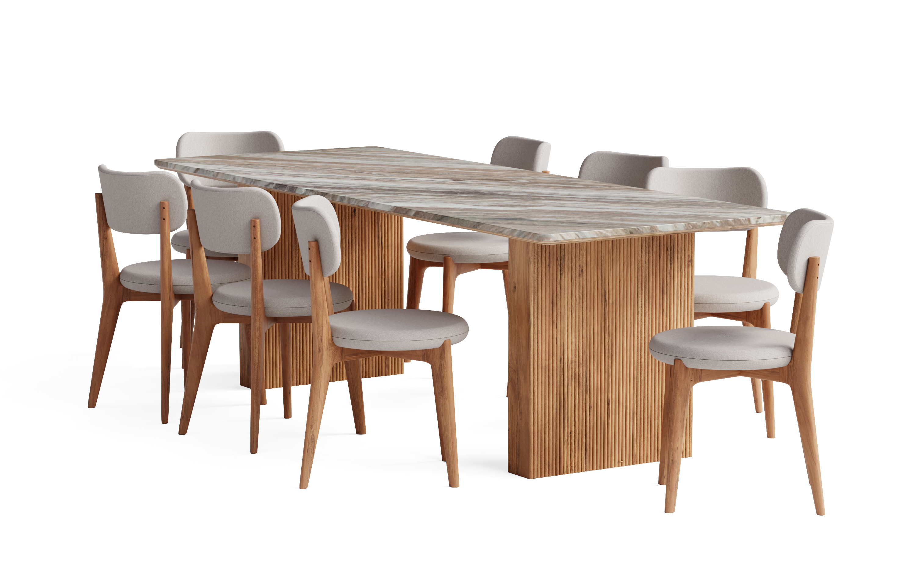 8 Seater Table: 240 L × 100 W × 76 H cm