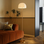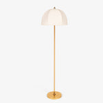 The Ayra Floor Lamp is tall, sculptural, and serene. Its canopy-inspired silhouette rises gracefully, finished in a soft brass tone. Both minimal and striking, it fits beautifully beside a sofa, in a reading nook, or as a corner sta