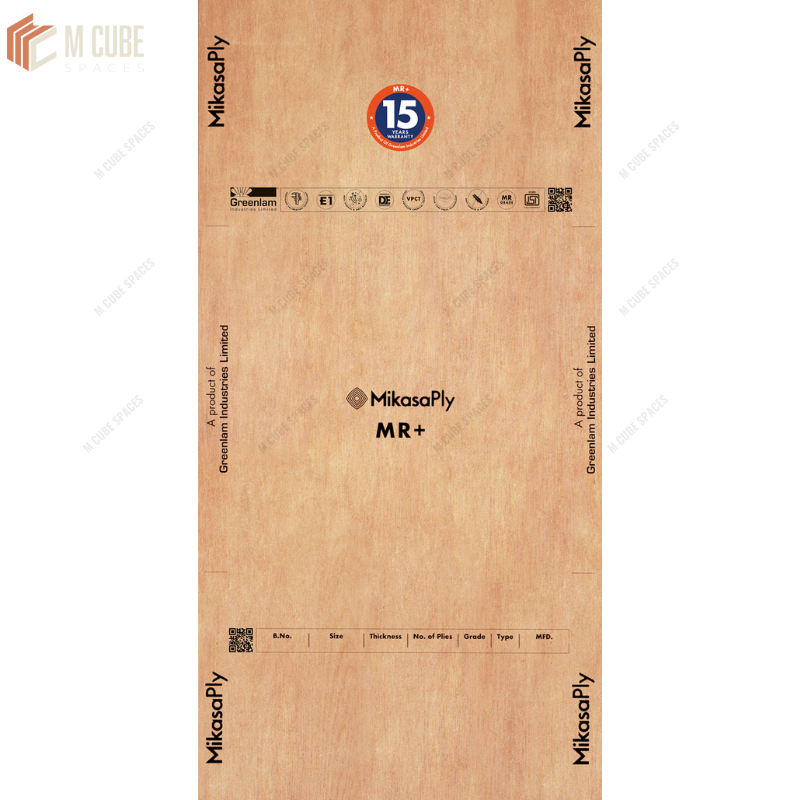 MR+ Plywood is a moisture-resistant plywood made from premium tropical wood with a 0.30mm face veneer, offering high strength and durability. Designed for humid conditions, it uses E1-certified eco-friendly resin and comes with a 15-year warranty, making it a reliable, long-lasting, and safe choice for interiors.
