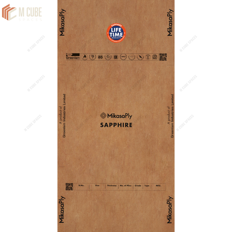 Sapphire Plywood is a premium-grade structural plywood crafted from 100% composed hardwood veneer with 0.6mm face thickness on both sides. Conforming to E0 emission norms, it ensures environmental safety and high performance. Known for exceptional strength, inherent fire-retardant properties, and a lifetime warranty, Sapphire is engineered for those who demand the very best in durability, safety, and craftsmanship.