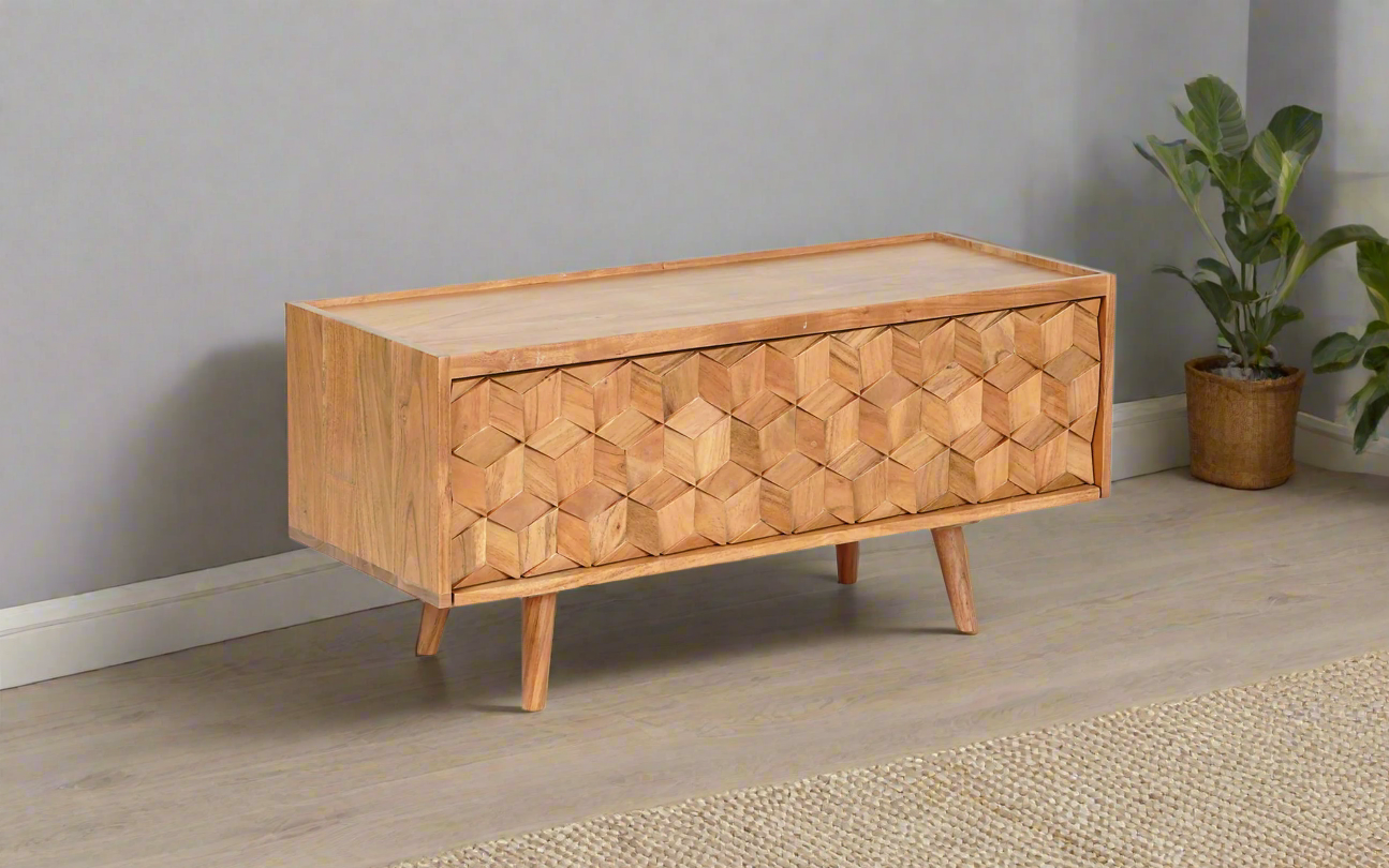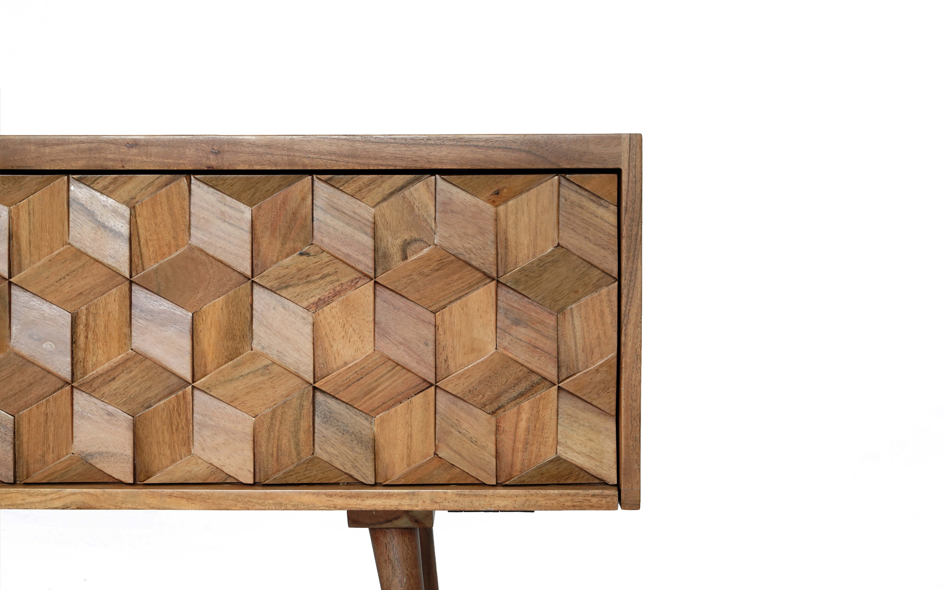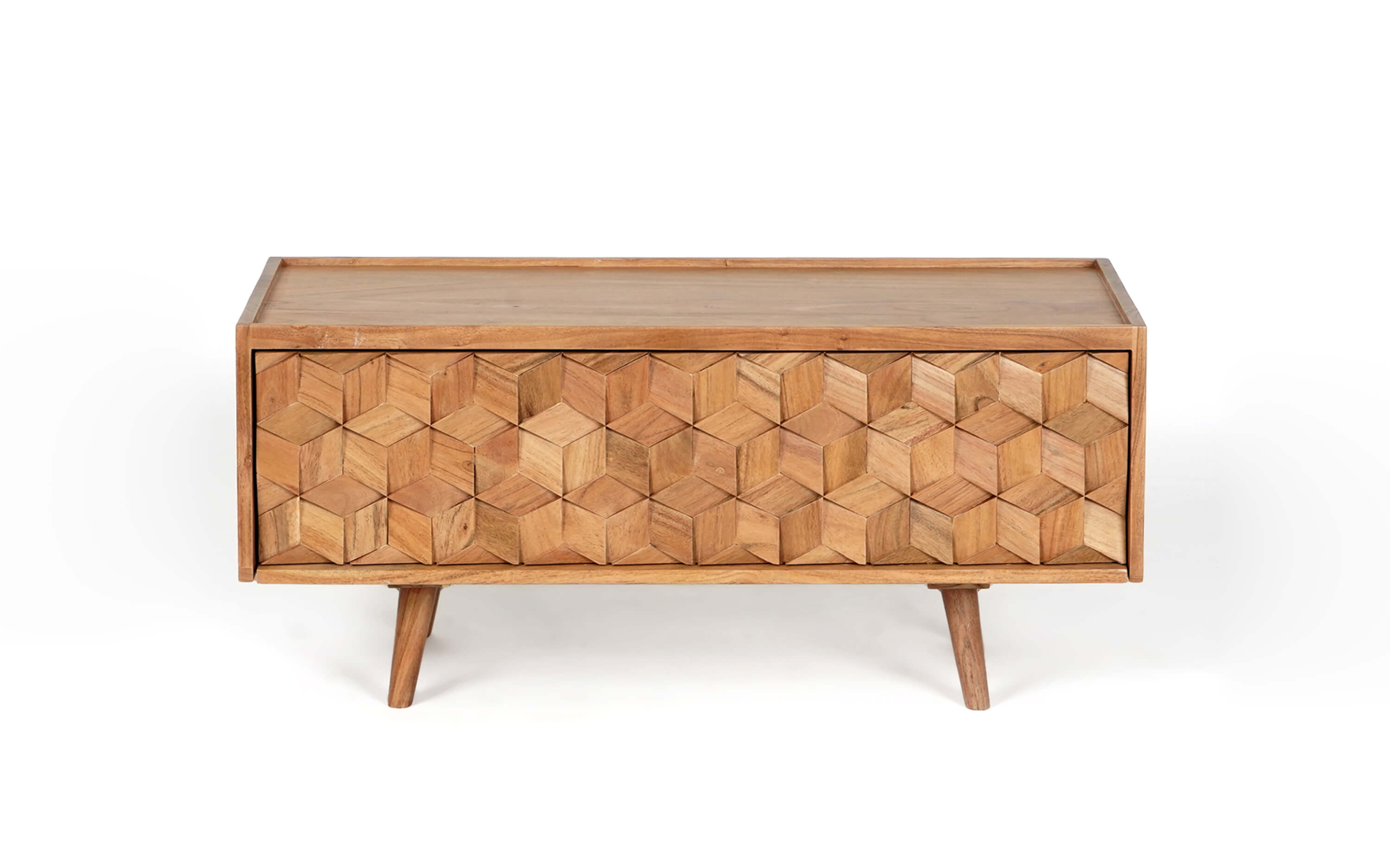 Ayaka TV Unit, crafted entirely from exquisite Acacia Wood, embodies natural beauty. The natural finish on the wood accentuates its organic grain patterns, showcasing the inherent allure of acacia wood in its purest form.