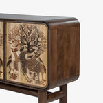 The Tajni Sideboard brings artistry to functionality with its intricate laser-cut pattern. Designed as a storage and display piece, it elevates hallways or dining areas with texture, light play, and artisanal flair.