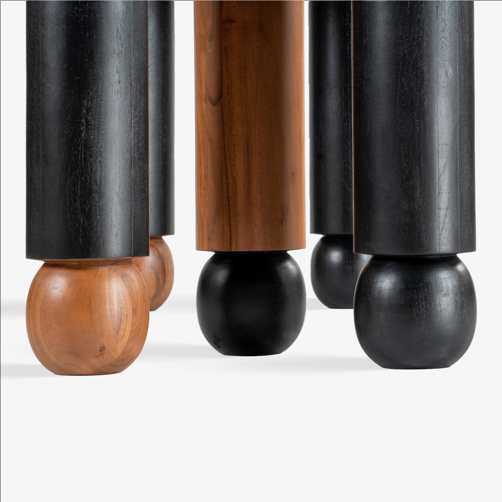 Named after the serene balance of Japanese design, the Noto Dining Table features a striking combination of a wide black surface and fluted cylindrical legs in natural wood tone. Clean-lined yet characterful, it invites both bold dinners and quiet mornings.
