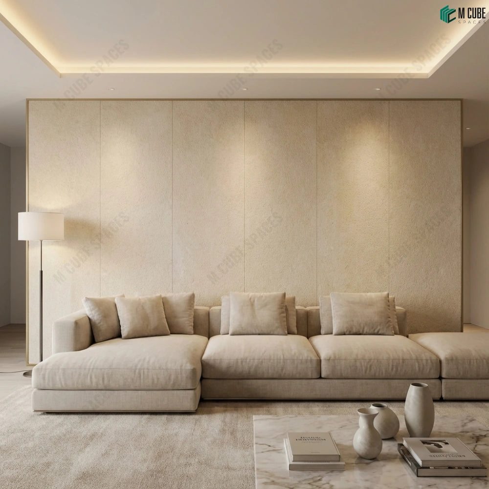 Modern Living Room Accent Wall with Mint Sandstone Stone Veneer