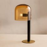 The Syra Table Lamp is a celebration of contrast—where sleek black metal meets warm brass and a dome of colored glass. With its clean lines and architectural proportions, it feels modern yet atmospheric, ideal for adding mood and style to any corner.