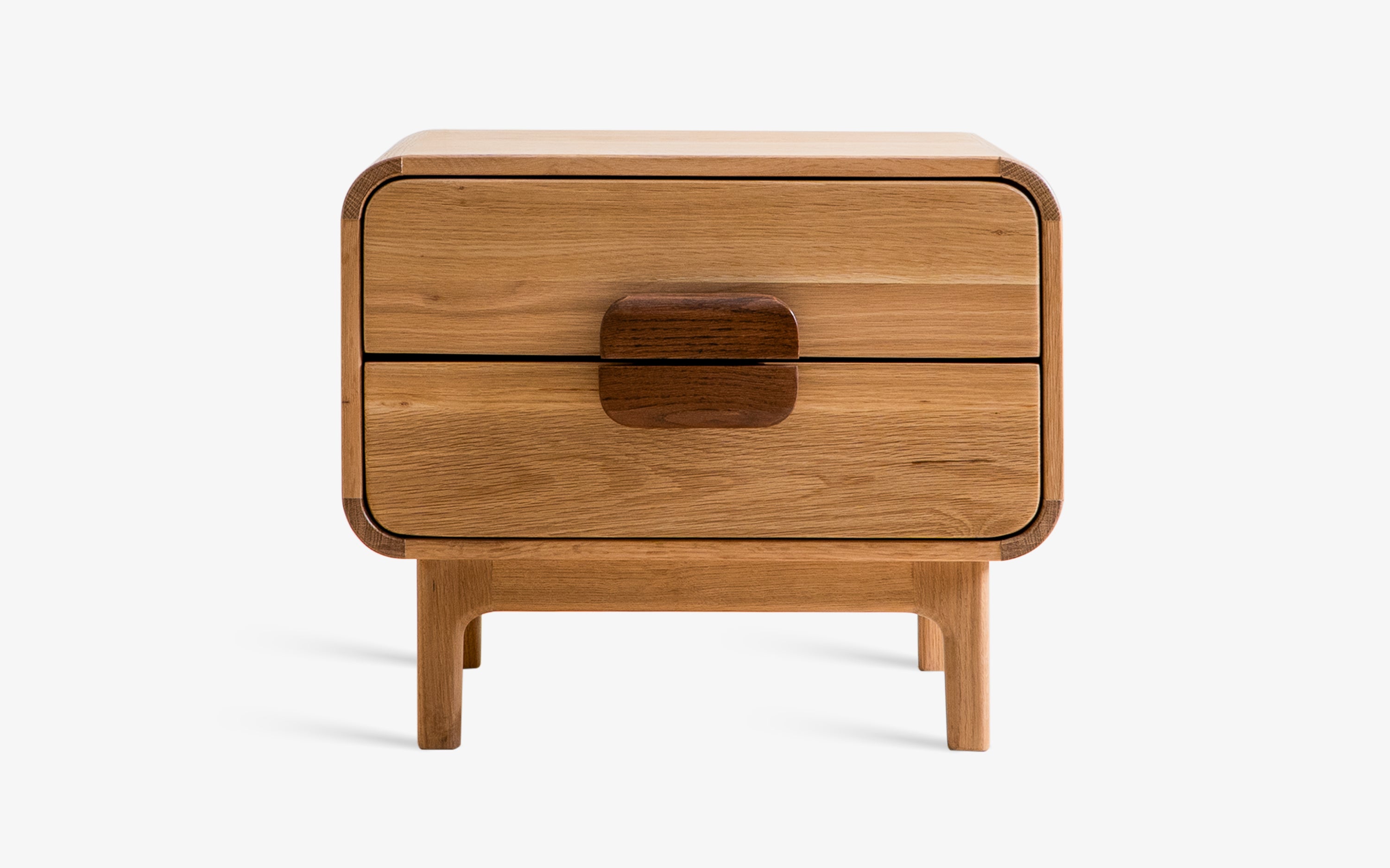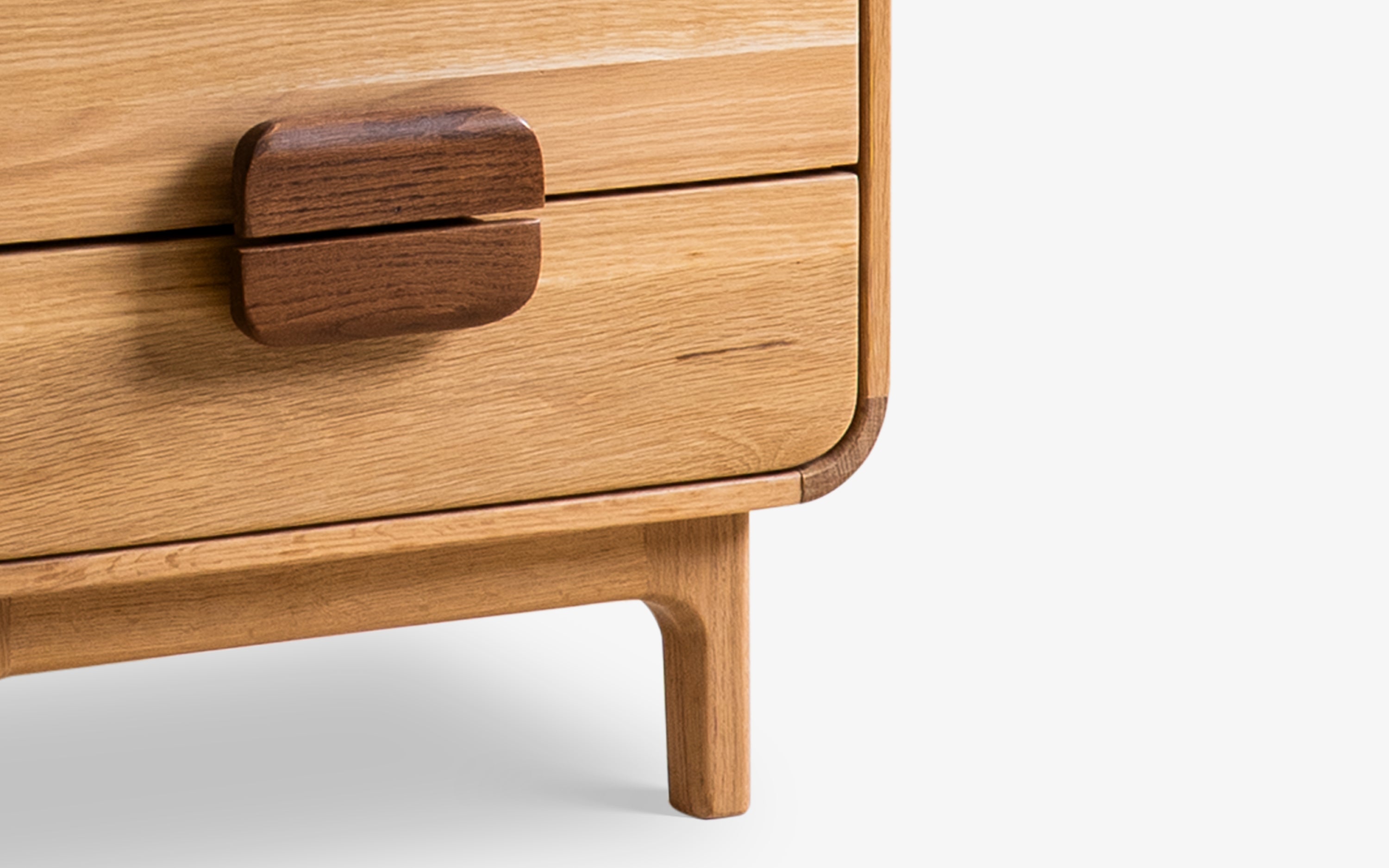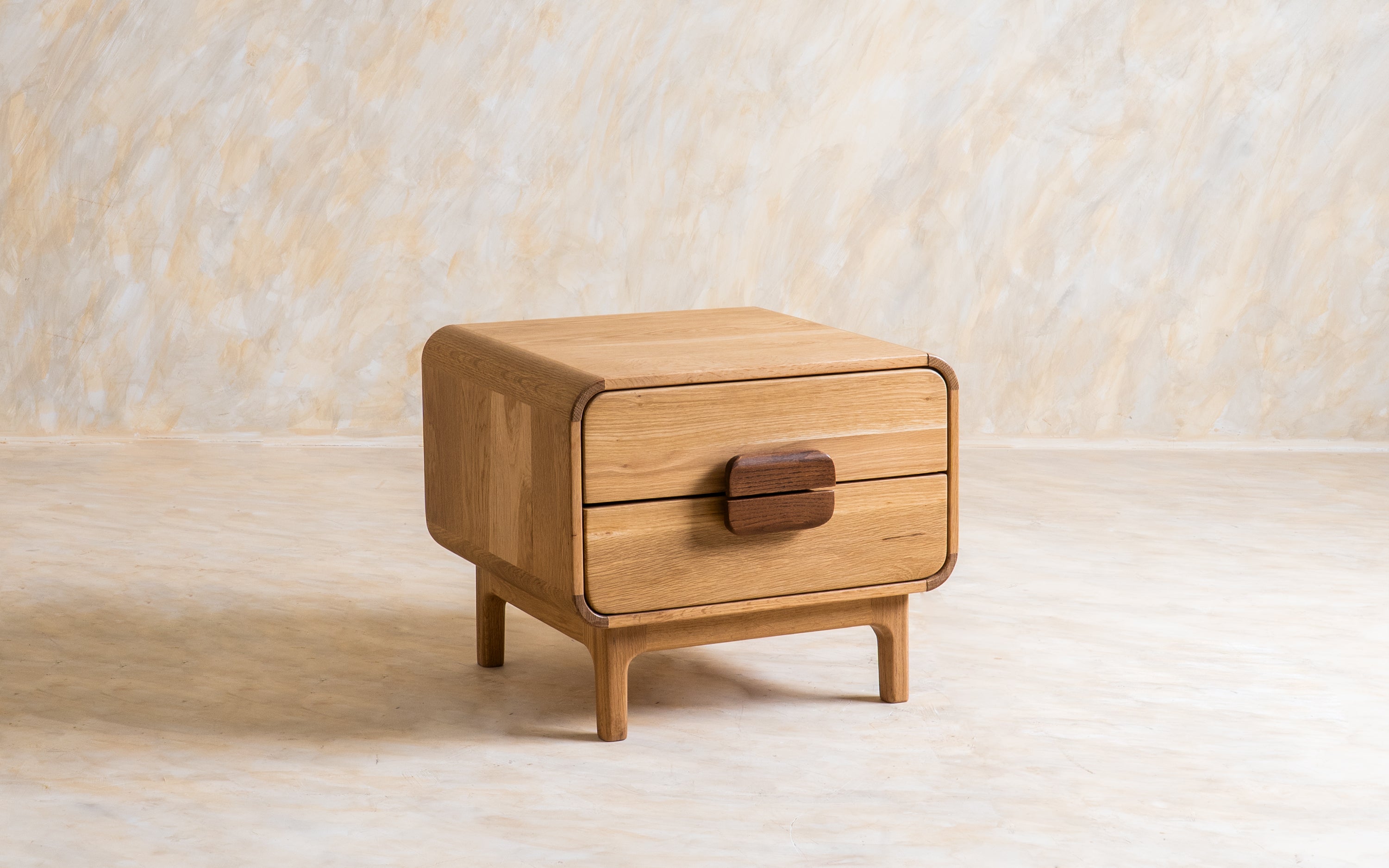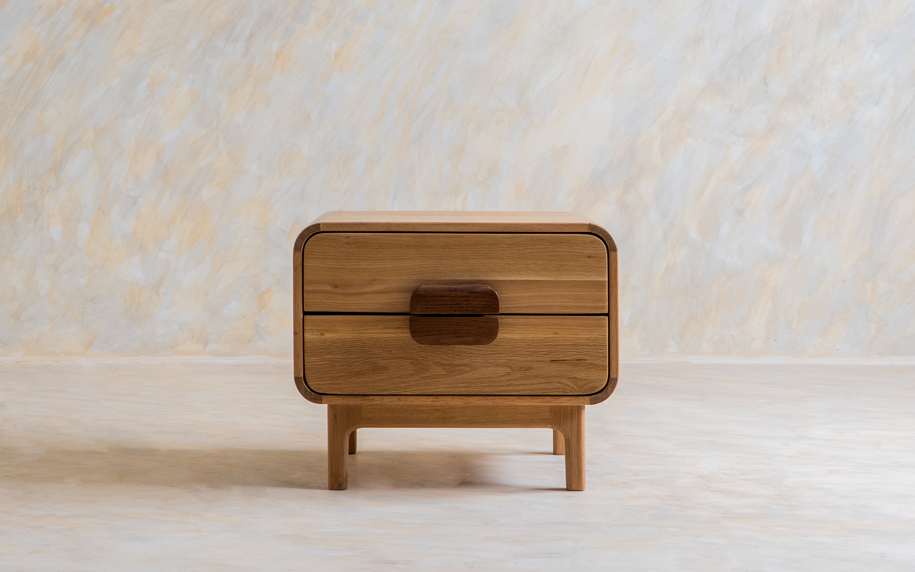 Crafted from solid oak wood, the Tuskar Bedside features soft curves and a distinctive in-house finished handle, blending functionality with modern charm. Its minimalist design and thoughtful details bring understated elegance to any space.