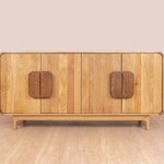 Introducing the TUSKAR sideboard, featuring distinctive handles with an exclusive in-house finish. Crafted from solid oak, it boasts soft curves along every edge, creating a welcoming and modern look. Designed to blend seamlessly into any space, the TUSKAR sideboard combines functionality with charm. Its minimalist yet striking appearance suits both modern and contemporary settings. With its blend of craftsmanship and thoughtful design, the TUSKAR sideboard enhances any room with understated elegance and functional beauty.