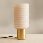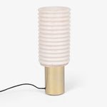 The Tylis Tall Table Lamp stretches the same design language into an elongated silhouette. Its vertical form adds height and presence, while the ribbed alabaster-like shade creates depth through its play of light and shadow. A modern accent that works beautifully on consoles or as a statement bedside lamp.